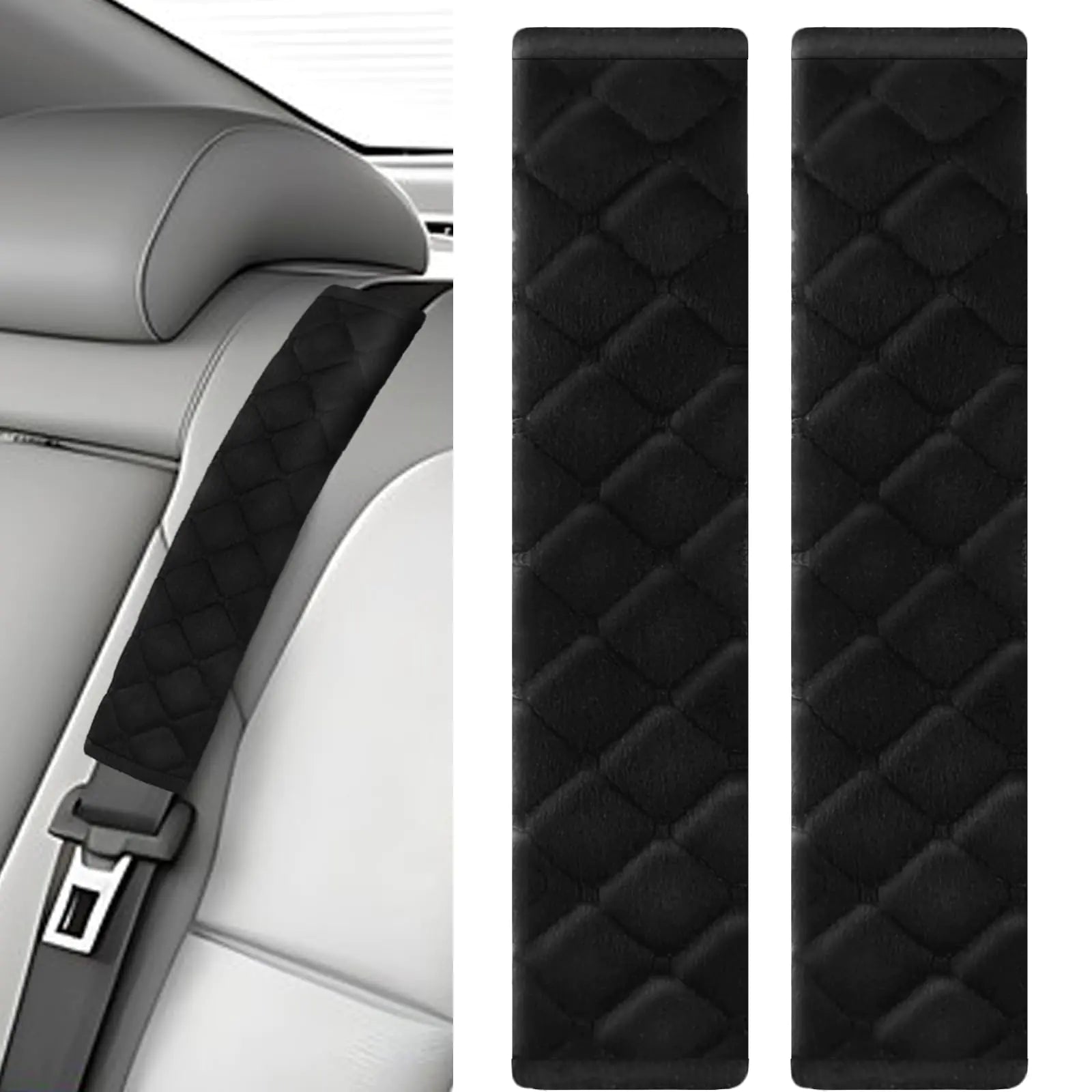 [【Premium Materials】Our car seat strap pads are crafted from polyester fiber materials Their known for durability and resistance to fading. Car seat belt shoulder guard High quality materials can withstand long-term wear and provide comfort by protecting the shoulders and neck Pad for seat belts enhancing your driving experience 【Easy to Use】Soft shoulder strap covers are equipped with hook and loop making the installation process incredibly simple.Seat belt cover pad no tools are required just open the hook and loop Fold it over your seat belt and press it closed Allowing you to immediately enjoy the comfort and protection our shoulder strap covers offer 【Wide Application】Our car seat belt padding measuring 10.6 x 2.4 in (27 x 6 cm) Car seat belt shoulder strap cover are designed to fit a variety of vehicle seat belts including those in cars trucks and airplanes. Seat belt protector can also serve as shoulder pads for backpacks laptop bags luggage and more providing much-needed relief for your shoulders when carrying heavy loads reducing pressure on your shoulders and making it more comfortable to carry items for extended periods "【Stylish Design】Seatbelt covers surface features finely crafted square checks giving it a fashionable and classic look. The seatbelt covers black blend seamlessly with your cars interior enhancing the aesthetic your vehicle" "【Enhanced Comfort】The seatbelt shoulder strap cushion reduce friction between the seat belt and your skin or clothing alleviating the wear and irritation often associated with seat belts.Car seat belt pad cover enhance the overall driving and riding experience making your journeys more comfortable whether its a long road trip or a short commute. Our neck pad strap for car make your driving time feel less tiring and more relaxing"]